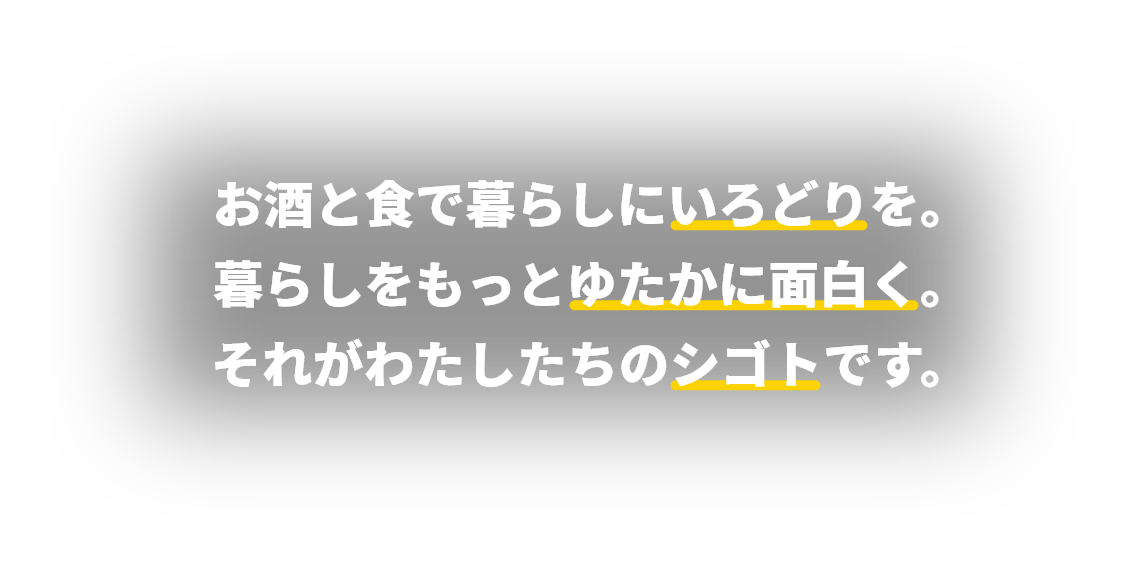 文化に根差し、暮らしをより豊かに幸せにしてくれるアイテム、それがお酒であり、古今東西、なくてはならないものだと私たちは確信しています。